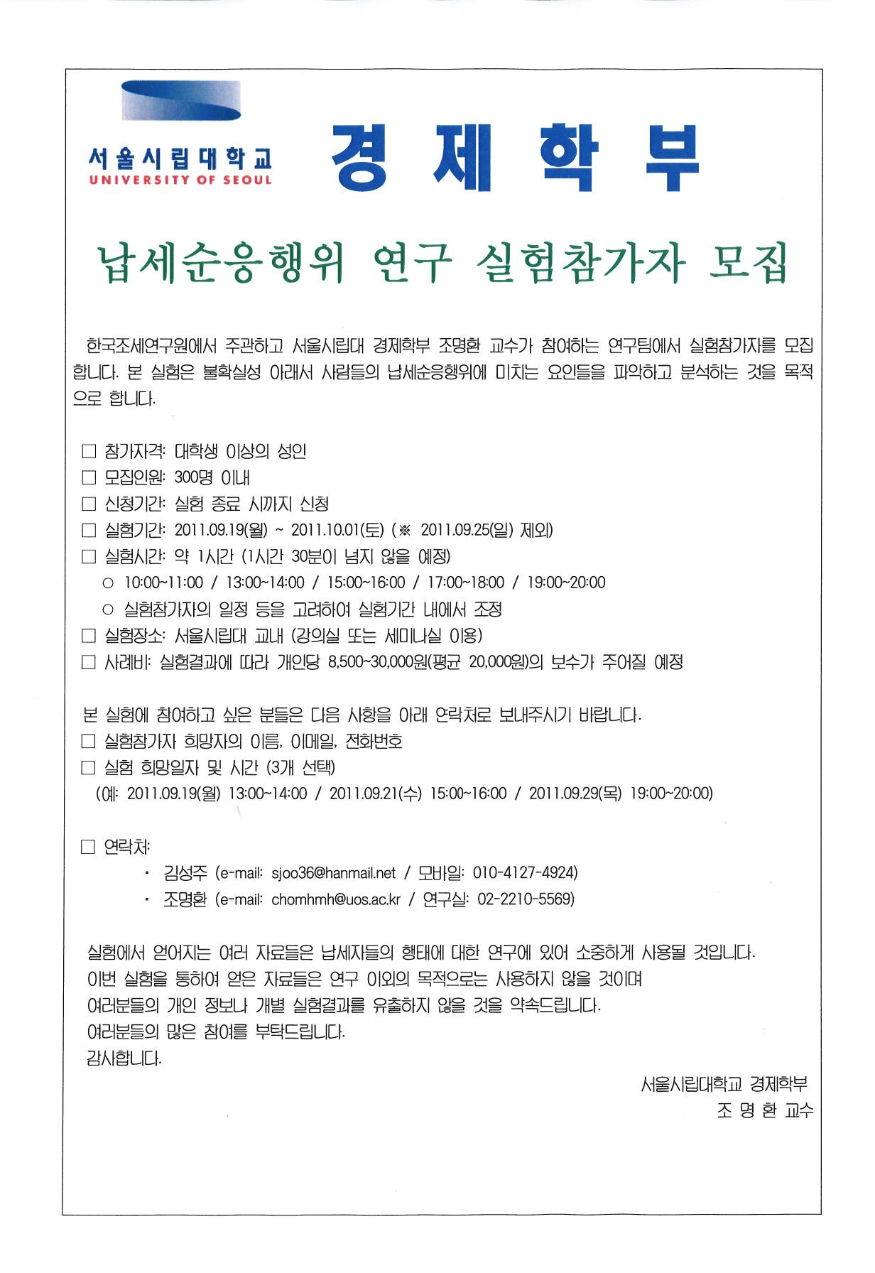 납세순응행위 연구 실험참가자 모집-경제학부 조명환 교수님 주관